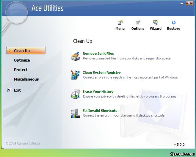 5. Для полного счастья предлагаю еще набор системных утилит для чистки компьютера - Ace Utilities 5.0